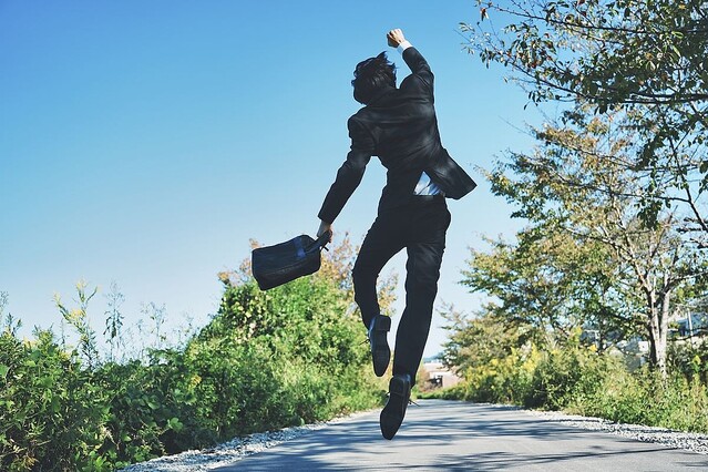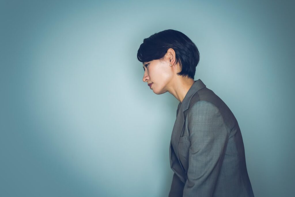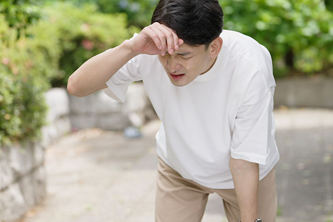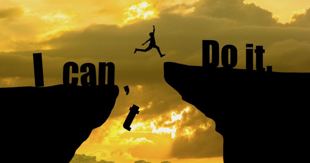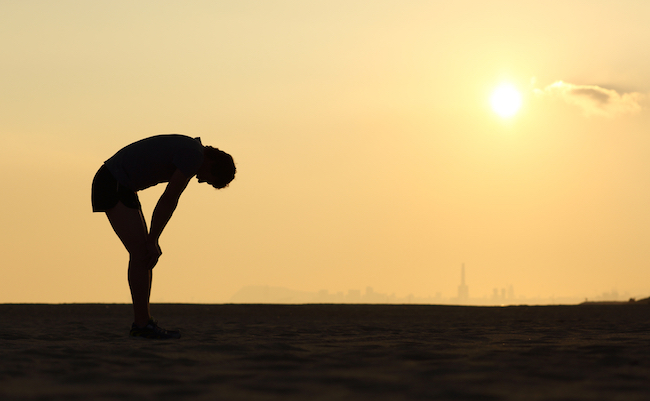 Silhouette of an exhausted sportsman at sunset with the horizon in the background